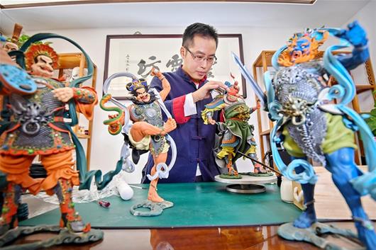 今年 37歲的劉潔,有一雙巧手。他制作的面塑,精細(xì),精致,精美。無(wú)論傳統(tǒng)題材的關(guān)公或四大天王,還是李白、屈原或者動(dòng)漫人物,都有讓人一眼驚艷的效果。