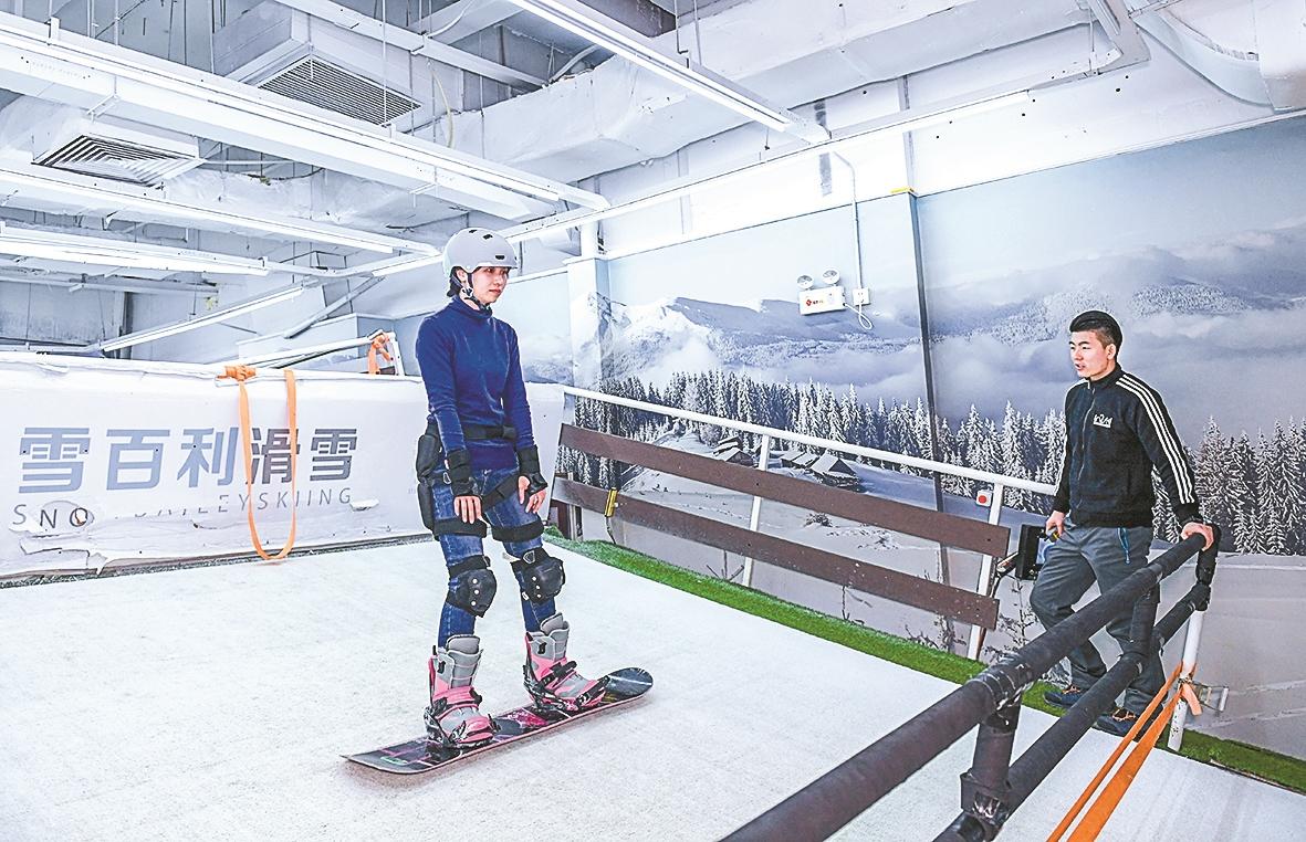 一女子在徐東群星城內(nèi)的滑雪場(chǎng)練習(xí)