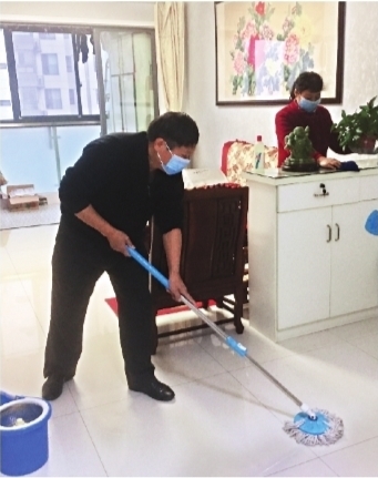 “家族成員之間每天打電話互報(bào)平安,互相鼓勵。”22日下午,漢陽區(qū)建橋街鐘家村社區(qū)老黨員謝幫惠報(bào)完平安,和老伴一起做起了清潔!拔覀兂鲩T戴口罩、勤洗手,經(jīng)常開門開窗通風(fēng)。做好清潔,是對自己負(fù)責(zé),也是對別人負(fù)責(zé)!苯衲70歲的謝幫惠住在16樓,平時家里只有他和老伴。長江日報(bào)記者走進(jìn)他家時,他正和老伴用消毒液擦桌子、拖地板,屋里彌漫著一股消毒水的氣味。