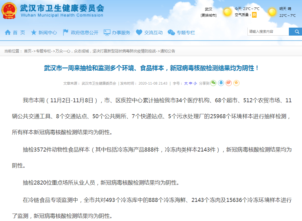 在冷鏈食品專項監(jiān)測中,全市共對493個冷凍庫中的888個冷凍海鮮、2143個凍肉及15636個冷凍環(huán)境樣本進行了監(jiān)測,新冠病毒核酸檢測結果均為陰性。