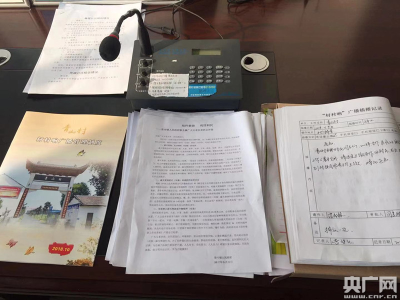 鐘前進(jìn)說,村里的廣播每天都會(huì)響,這讓他了解了很多新政策、獲取了不少新信息。而通過廣播宣傳這些新政策的,正是村里的支部書記范后林。在廣播室的記錄本上,記錄了范后林的播出記錄,內(nèi)容包括精準(zhǔn)扶貧、秸稈禁燒、河湖長(zhǎng)制等方方面面。江陵縣資市鎮(zhèn)青山村黨支部書記范后林:“每天讓群眾聽到我們的聲音。最大的改變就是干部群眾拉攏了一種距離。因?yàn)槲覀兇搴苊Γ郧叭罕娬也坏礁刹,那么現(xiàn)在可以聽到村干部在廣播上講,把精神傳到老百姓的心中。村村響廣播通知后,政策是公開的,透明的,也貼近了老百姓的心聲!