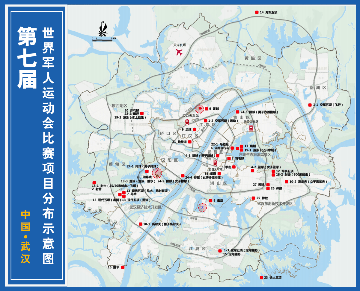 第七屆世界軍人運動會將于2019年10月18日至27日在中國武漢舉行,賽期10天,共設(shè)置射擊、游泳、田徑、籃球等27個大項、329個小項。