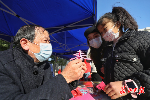 剪紙大師朱兵華一張紅紙、一把剪刀、一雙巧手,為現(xiàn)場(chǎng)群眾展示了非遺魅力,并贈(zèng)送給大家自己的剪紙作品。“剪紙寄托了人們對(duì)美好生活的向往,對(duì)吉祥幸福的期盼。”朱兵華說(shuō)。