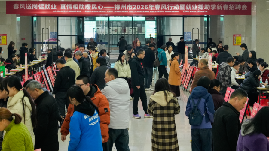 2月25日,郴州市本級2026年“春風(fēng)行動”新春招聘會在就業(yè)超市火熱開場。龍頭企業(yè)提供4000-8000元/月的普崗及過萬技崗,供需雙方“現(xiàn)場速配”頻頻上演。