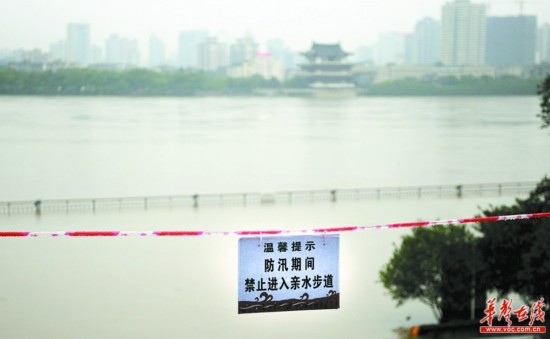 6月29日,受強降雨和湘江上游來水影響,湘江水位急劇上漲,長沙橘子洲景區(qū)啟動防汛緊急預案,于當天13時30分閉園。目前,景區(qū)已組織人員在危險區(qū)域設立了警示牌、警戒線,確保景區(qū)平安度汛。