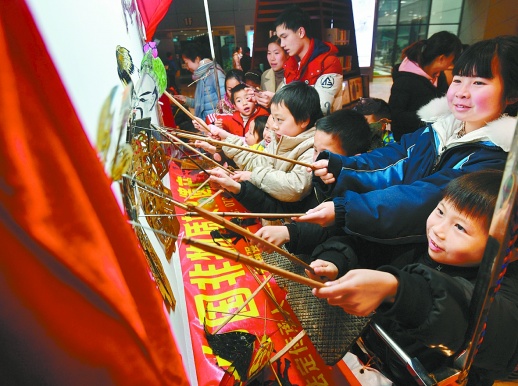 2月9日上午,長沙圖書館,孩子們在體驗皮影戲表演。當天,該館“湖湘文化進萬家”迎新春系列活動啟動,猜燈謎、送春聯(lián)、非遺項目展示和年俗文化展等活動,讓市民來圖書館讀書的同時體驗濃濃的新春年味。