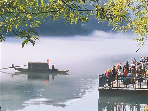 7月22日,資興市小東江景區(qū)內(nèi),兩岸峰巒疊翠,湖面水汽蒸騰,云霧繚繞,吸引了省內(nèi)外游客前來賞景避暑。暑期來臨,湖南省多地景區(qū)采取限量、預(yù)約、錯峰等措施開展旅游活動,旅游市場逐漸回暖。記者 徐行 攝