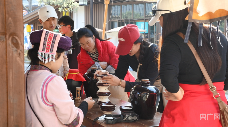 游客正在進行非遺體驗(央廣網發(fā) 魏穎輝 攝)
