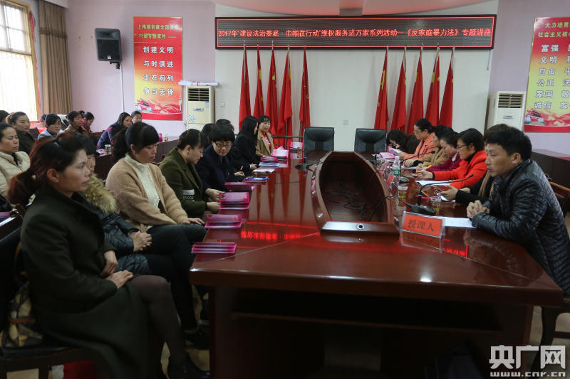 央廣網(wǎng)婁底3月13日消息(記者鄧文輝 通訊員郭國權(quán) 劉新華)為強(qiáng)化對(duì)婦女的法治宣傳教育和維權(quán)服務(wù),推進(jìn)法治文化進(jìn)家庭,婁底市婦聯(lián)、婁底市司法局、婁底市綜治辦、婁底市律協(xié)聯(lián)合開展2017年“建設(shè)法治婁底·巾幗在行動(dòng)”維權(quán)服務(wù)進(jìn)萬家系列活動(dòng)。3月9日,首場(chǎng)普法宣傳活動(dòng)在湖南省婁底市新化縣隆重舉行。這次活動(dòng)由新化縣婦聯(lián)承辦,新化縣禮儀文化協(xié)會(huì)協(xié)辦。