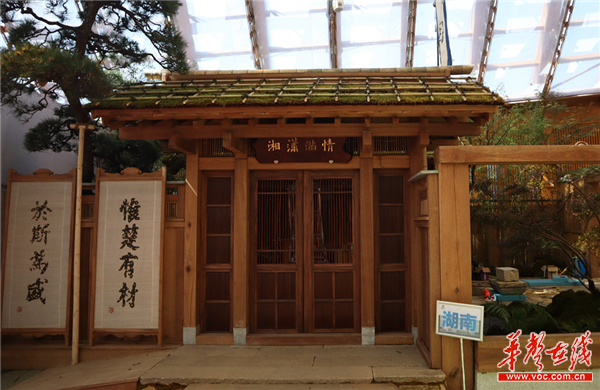 除湖南園之外,在世園會園區(qū)的中國館二樓還設有湖南館,約100平方米的面積內(nèi),一幅“惟楚有材 于斯為盛”的對聯(lián)后是是一座融合了湖湘文化之魅力和三湘四水之靈秀的傳統(tǒng)園林庭院,擺放有樹樁盆景、水石盆景、花果盆景,以“瀟湘八景”為主題的壓花作品,與充滿了山水田園氣息的湖南園相比,湖南館將湖南的文化底蘊呈現(xiàn)給游客。