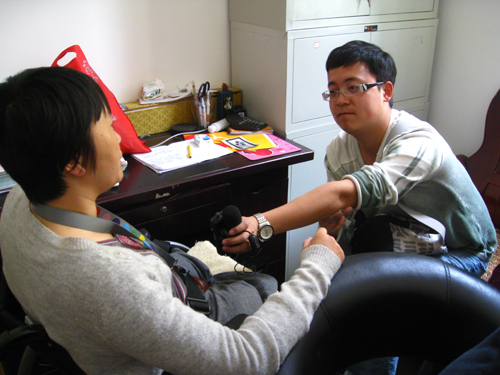 黃莉:我覺得我們最感動的就是他們特別敬業(yè),他們在一個很小的房間工作,環(huán)境其實很差,因為他做假肢有很多的粉塵和刺鼻氣味,我們都不敢在里面呆久,但是他們在里面一待就是一天,有時候甚至到半夜。我們把何老師帶到北川中學,去見北川中學的校長,把何老師的來意告訴他們,校長不敢相信怎么會有這種事情?免費為孩子做假肢,而且是做世界上最好的假肢!我特別特別感激他們,因為我在最困難的時候,因為那時候我有一個褥瘡,那個褥瘡我做了兩次手術(shù)都沒好,我在手術(shù)臺上為這個傷口我大哭了一場,因為醫(yī)生告訴我這個褥瘡很難治,然后香港“站起來”的老師知道之后邀請我去香港手術(shù),到了香港一個月我的傷口就完全好了,我真的特別感激他們。