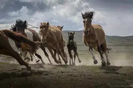 黑走馬是一種比較古老的舞蹈,關于它的來源,在哈薩克族民間有這樣的傳說:很久以前,草原上有一位哈薩克族小伙子發(fā)現(xiàn)了一群野馬,他揮動套馬索套住了一匹非常剽悍的黑色野馬。小伙子歷盡種種艱辛,克服重重困難,終于將它馴化成一匹上好的走馬。當他騎著黑走馬回到家鄉(xiāng)阿吾勒時,鄉(xiāng)親們聞訊紛紛前來祝賀。小伙子在馬上和馬下,用各種動作自豪而詼諧地表演了他捕捉和馴化黑馬的整個過程。從此,以騎馬為題材的,表現(xiàn)草原上駿馬奔馳時矯健姿態(tài)的卡拉角勒哈舞蹈便開始在哈薩克族民間流傳。