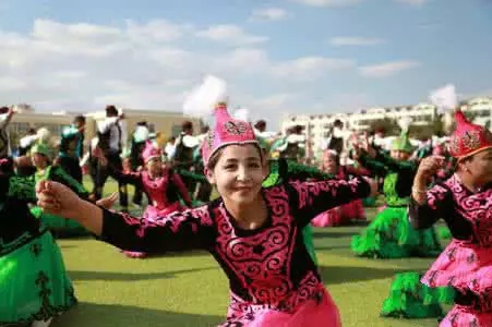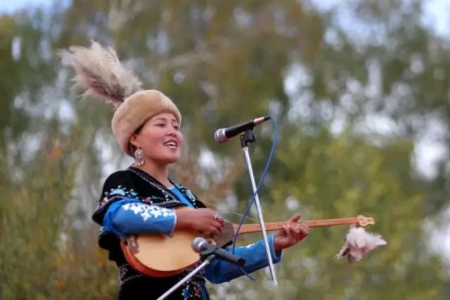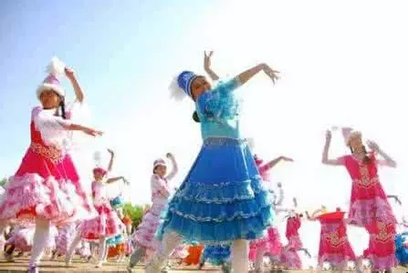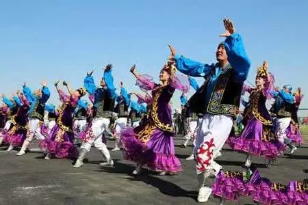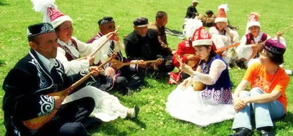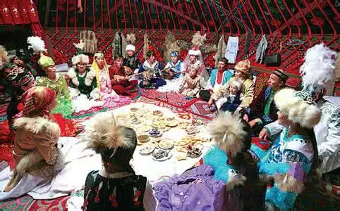 阿肯彈唱是哈薩克族人民悠久的民間傳統(tǒng)藝術形式。每逢阿肯彈唱會,遠近的人們身著盛裝,騎著駿馬,彈著冬不拉載歌載舞來到鮮花盛開的的草原上,各路歌手登場獻藝,聽眾們喝彩助威,經(jīng)常是通宵達旦一連數(shù)日。