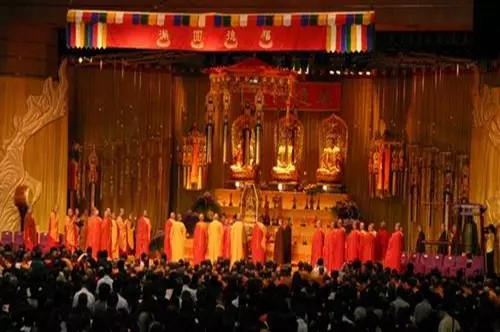 佛指舍利被安奉在香港會展中心大廳,數(shù)千僧眾參加安奉儀式