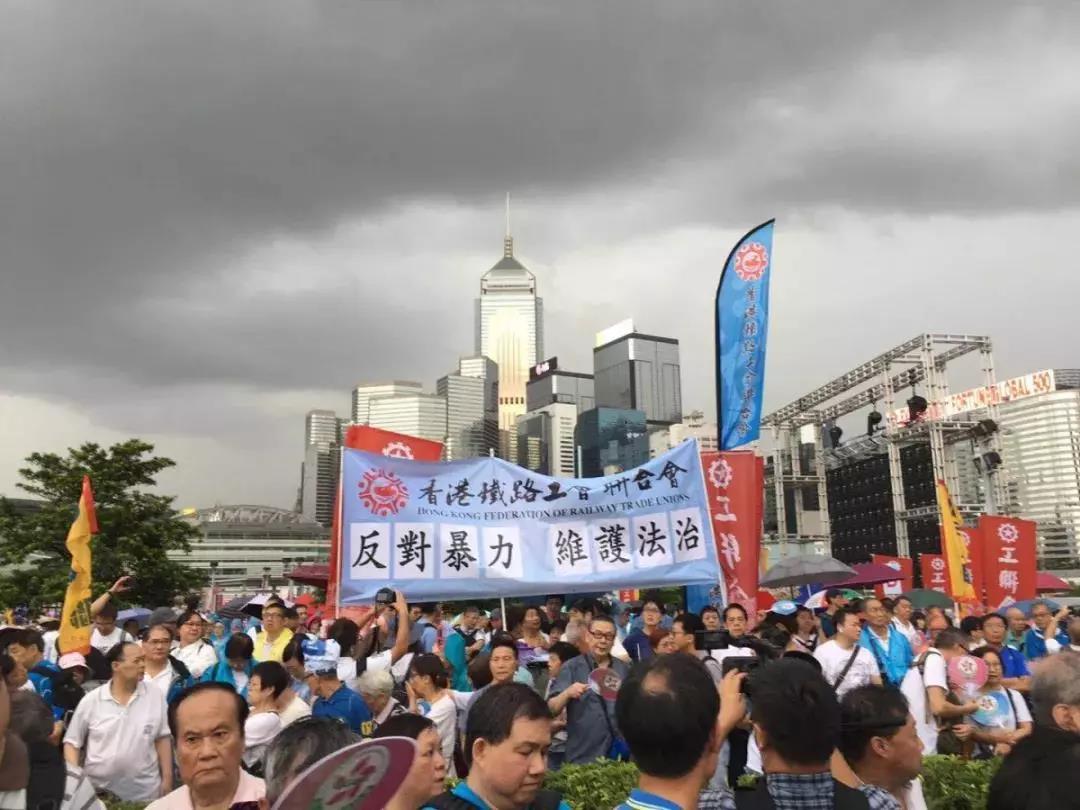 大會(huì)呼吁市民們支持警方,因?yàn)橄愀鄣木绞鞘刈o(hù)市民生命財(cái)產(chǎn)安全的堅(jiān)實(shí)防線,不能想象如果沒(méi)有警方,香港會(huì)變成什么樣,所以我們看到很多參加的朋友為現(xiàn)場(chǎng)的警方豎起大拇指,或者給他一個(gè)微笑,還有一些朋友,當(dāng)下大雨的時(shí)候,自覺(jué)地幫警察打傘,這是令我非常感動(dòng)的!