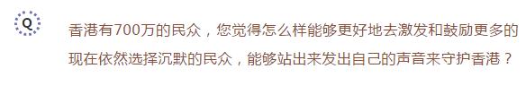 大家最大的共識(shí)就是守護(hù)法治,令到香港盡快恢復(fù)安寧和和平,這種聲音積聚的話才能夠最后和警方一起,和政府執(zhí)法部門、司法部門一起,震懾和壓制那些最激進(jìn)的、甚至搞港獨(dú)、不惜把香港一切打爛的暴力分子。