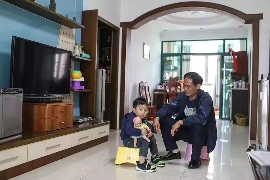 2018年3月,鄧錦輝和小孫子在家中。