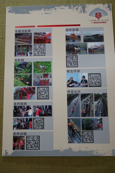 中央人民廣播電臺(tái)廣州節(jié)目制作室《韻味嶺南》節(jié)目主持人陳健光(播音名:DJ肥光)于2013年曾經(jīng)制作過(guò)系列報(bào)道《賽龍奪錦——嶺南龍舟巡禮》,期間曾探訪過(guò)珠三角各地的龍舟文化,例如:廣州天河珠村起龍舟、廣州番禺沙亭龍船乸文化、廣州下滘龍舟廠龍舟制作技藝、廣州大塘村龍船鼓制作、佛山南海專業(yè)龍舟隊(duì)建設(shè)、番禺沙滘中學(xué)龍舟文化節(jié)、香港大澳龍舟游涌……而廣州第六屆廣府文化節(jié)設(shè)立了廣府龍舟文化的展館,《韻味嶺南》節(jié)目的龍舟文化系列報(bào)道正契合此次展覽,于是收到廣州市人民政府文史研究館的邀請(qǐng),雙方運(yùn)用新媒體技術(shù),在展館現(xiàn)場(chǎng)設(shè)立了一幅“龍舟聲音墻”,上面配有相關(guān)節(jié)目的二維碼,觀眾用手機(jī)掃描后即可在線收聽(tīng)龍舟文化節(jié)目。