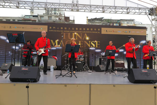 (央廣記者:周偉琪、李智峰、王冰月)2016年4月2日下午在澳門塔石廣場舉行了一場名為澳門人樂隊(英文名Tuna)土生葡語音樂嘉年華,澳門人樂隊共7名成員帶給澳門市民一場精彩的演出,在2個小時的音樂演出中,澳門人樂隊為現(xiàn)場的前來支持他們的粉絲獻上了多語種的歌曲,包含粵語、英語、葡語、菲律賓語,首首經(jīng)典代表作品引發(fā)現(xiàn)場數(shù)百位觀眾的熱烈反響!皫X南音樂風(fēng)”節(jié)目組作為演出的支持媒體也有幸見證了本次的演出的精彩。
