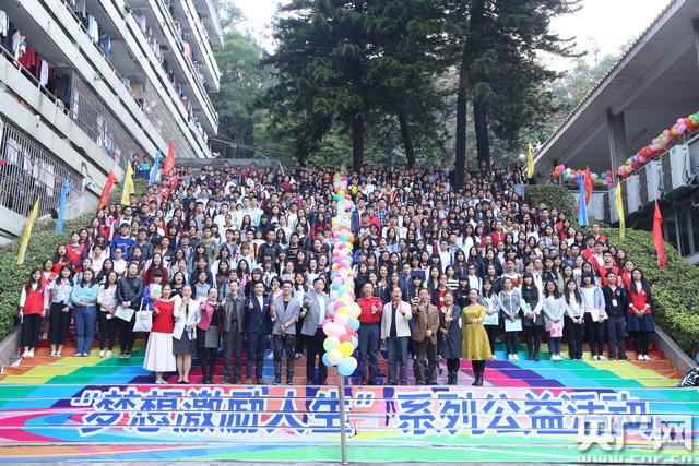 嘉賓與全體師生在大禮堂夢(mèng)想階梯大合影