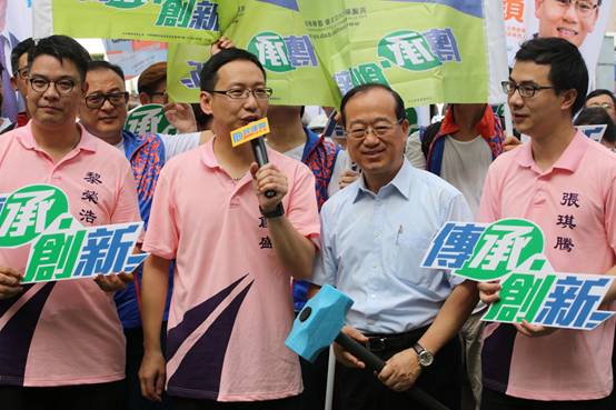 柯: 其實(shí)這個口號就能很好的表現(xiàn)出兩個狀況的。第一個就是反映出民建聯(lián)是一個能夠給年輕人多點(diǎn)嘗試參與政治機(jī)會的政黨。我們希望通過“有年輕,有干勁”這種想法,向議會注入新的動力。讓九東的市民知道年輕人是有能力,能夠擔(dān)當(dāng)起政治工作。第二句創(chuàng)新為九東,是因為九龍東面臨著很多老大難的問題,我們交通擁堵問題,長者人口多,貧窮問題嚴(yán)重,房屋問題備受關(guān)注。所以我們能夠希望通過新的思維,讓政府關(guān)注我們九龍東,所以就想到這個口號了。