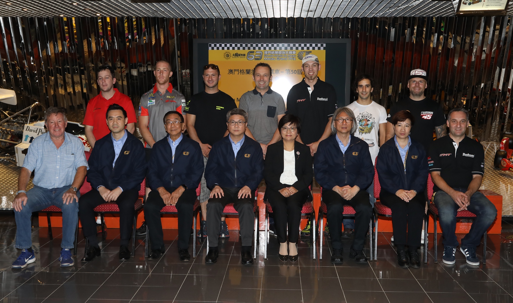 當(dāng)天出席記者會(huì)的嘉賓包括:澳門特別行政區(qū)政府體育局局長(zhǎng)及澳門格蘭披治大賽車組織委員會(huì)協(xié)調(diào)員潘永權(quán),澳門郵政局局長(zhǎng)劉惠明,中國(guó)-澳門汽車總會(huì)會(huì)長(zhǎng)和及澳門格蘭披治大賽車組織委員會(huì)市場(chǎng)及廣告專責(zé)小組組長(zhǎng)盧景昭、中國(guó)-澳門汽車總會(huì)理事長(zhǎng)和澳門格蘭披治大賽車組委會(huì)賽事專責(zé)小組組長(zhǎng)鐘國(guó)榮,以及澳門格蘭披治電單車大賽八屆冠軍路達(dá)和在1977年及1984年于東望洋賽道稱王的車手格蘭。