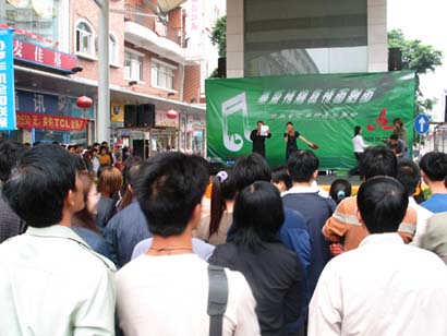 為了更多的回饋聽眾,華夏之聲于3月27日在東莞南城步行街舉辦了主持人與聽眾“華夏情緣真情面對面”活動,華夏之聲的主持人薇薇,田間,魯偉,門門一同齊聚東莞,與現(xiàn)場近千名聽眾進行了長達(dá)兩個小時的真情互動與精彩表演,并為大家?guī)チ司蓝Y品,真誠回饋聽眾多年來對華夏之聲的支持與厚愛。