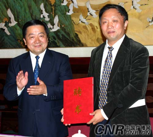 楊波臺(tái)長(zhǎng)向全國(guó)政協(xié)港澳臺(tái)僑委員會(huì)委員樂(lè)美真頒發(fā)評(píng)委聘書