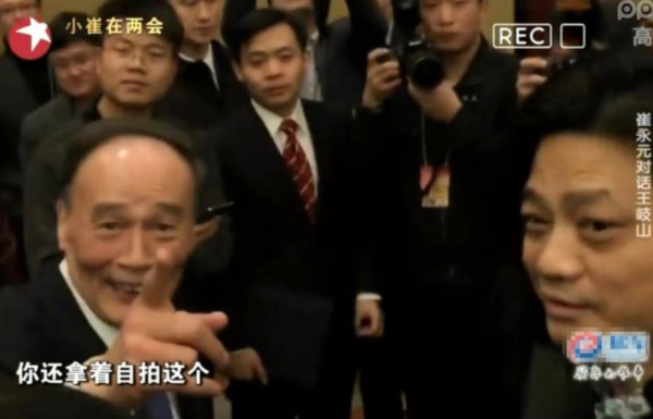 發(fā)仔的媒體同仁們也是蠻拼的,崔永元持"自拍神器"與王岐山互動:
