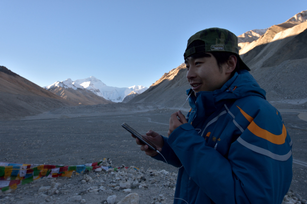 都市車天下主持人陽光在珠穆朗瑪峰大本營做直播連線