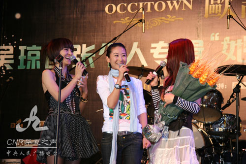 華夏之聲主持人藝菲(左)擔(dān)綱主持吳瓊專輯發(fā)布會(huì)
