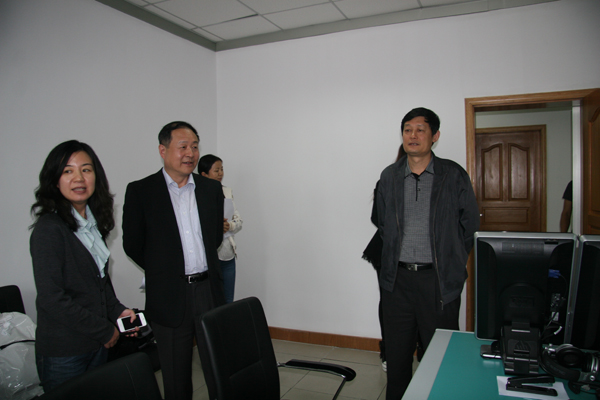 中央臺(tái)副總編輯杜嗣琨(左二)與對(duì)港澳節(jié)目中心主任韓長(zhǎng)江(右一)視察直播工作