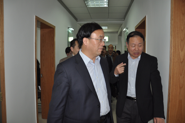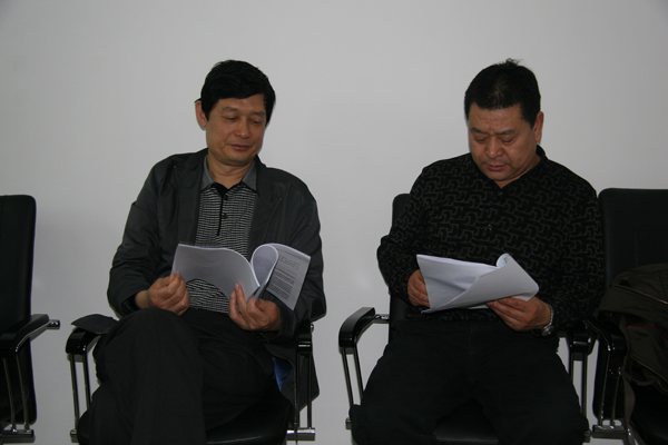 中央臺(tái)副總編輯杜嗣琨(右)與蘭州市市長(zhǎng)袁占亭(左)交談