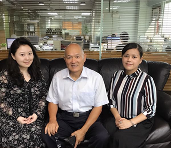 記者采訪臺商陳振州及其女兒陳慧娟(右一)