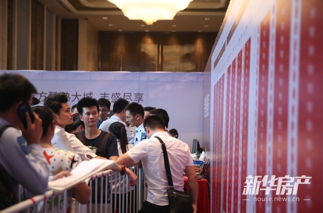 樓盤開盤現(xiàn)場,市民紛紛前來選房,升級自己家庭的空間。