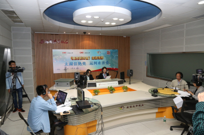 對港澳節(jié)目中心主任韓長江(右二)現(xiàn)場指導(dǎo)直播工作