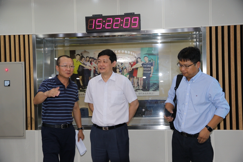 對港澳節(jié)目中心主任韓長江(中)、副主任胡翼(右)現(xiàn)場指導工作
