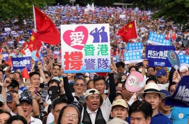 香港人民自發(fā)地組織起來,勇敢地站出來了。香港的不少地方、不少團體自發(fā)升國旗、護國旗。人們自發(fā)籌款,在不少本港報刊上,全版刊登支持香港特區(qū)政府、支持行政長官林鄭月娥、支持香港警隊的首頁全版廣告。首家刊登的報刊,一個上午就賣出了三十萬份,打破了香港的紀錄。人們用行動默默表達著心愿。不少香港市民帶著自己的孩子,到各分區(qū)的警署,向警員致敬,表達他們對警員的支持,送上孩子們用稚嫩的畫筆畫出的圖畫,表達心聲:“阿Sir,加油!