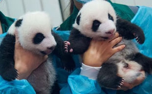 澳門大熊貓雙胞胎取名“健健”“康康”