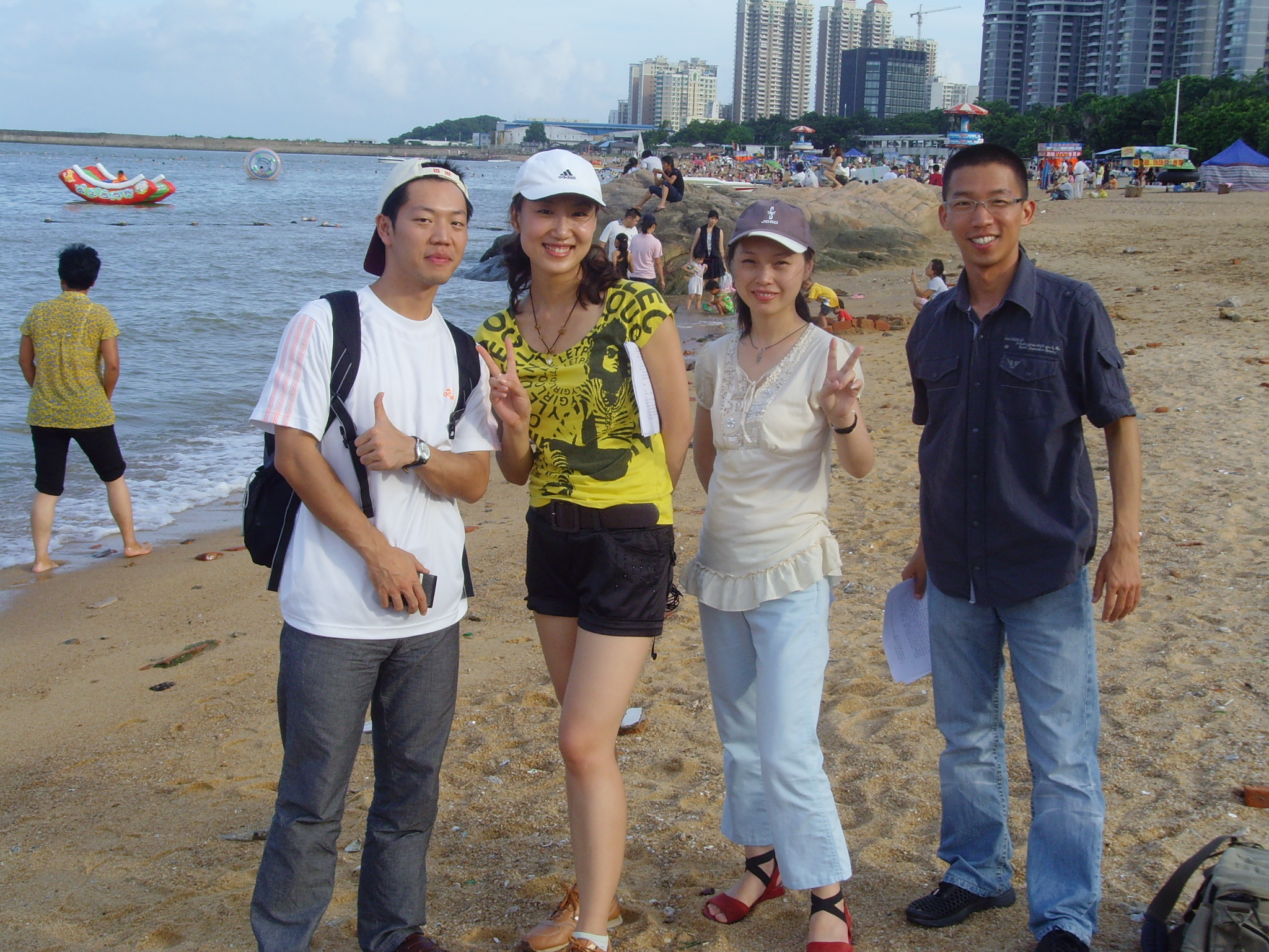 記者小草、雅雯、郭威與珠海臺記者海邊合影