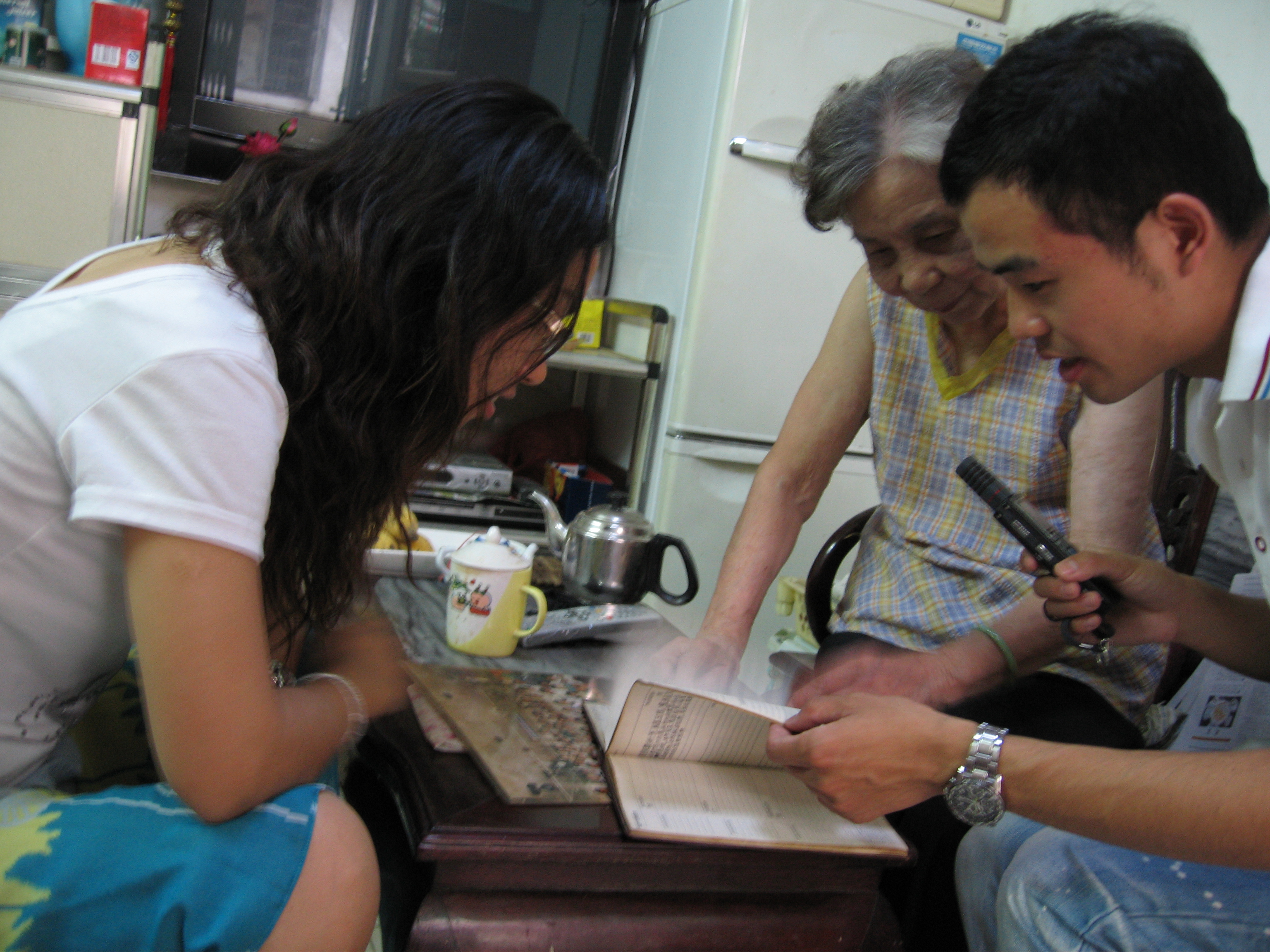 記者陳菲、小磊在廣州海珠區(qū)戴艷芳老人家里采訪,老人翻出了珍貴的老照片