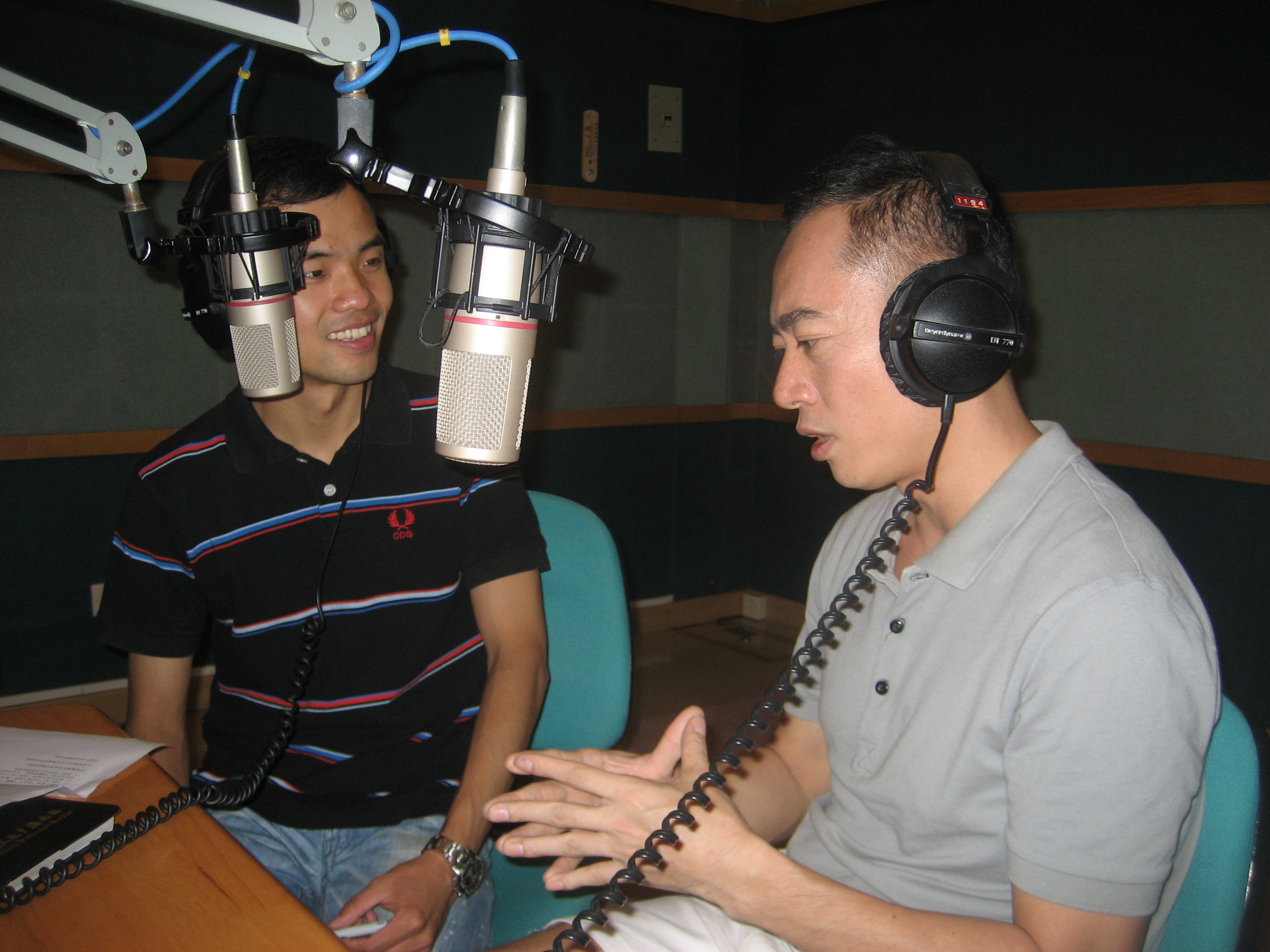 記者小磊在廣州電臺(tái)錄播間采訪廣州樂壇90年代代表性歌手麥子杰