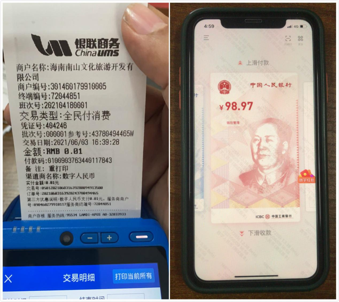 (在海南三亞南山景區(qū),消費(fèi)者已經(jīng)可以使用數(shù)字人民幣支付。圖片來(lái)源:銀聯(lián)商務(wù))