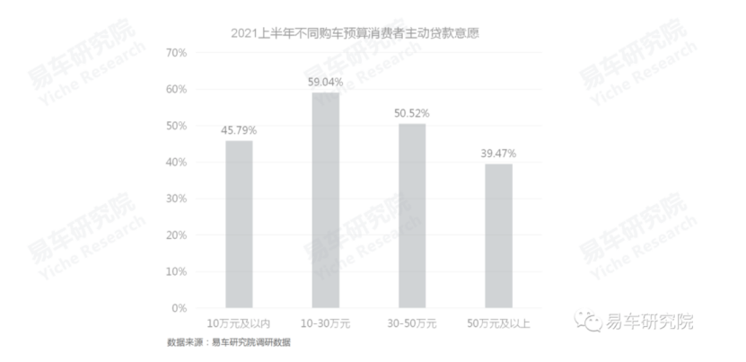 2021上半年,中國乘用車市場有高達54.6%的消費者有主動貸款購車的意愿,首次過半,貸款購車正成為中國車市的主導消費思維。目前不少咨詢機構(gòu)發(fā)布的2020年中國消費類汽車金融的滲透率,大體升至百分之五六十,與易車研究院的調(diào)研結(jié)果比較吻合;