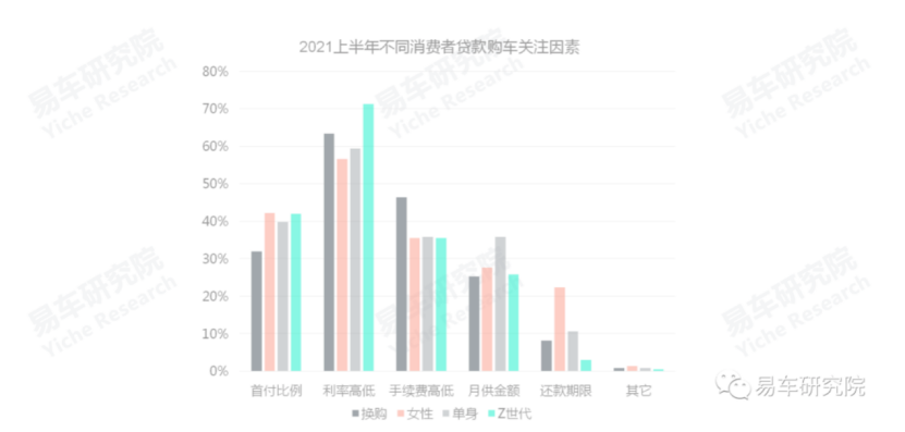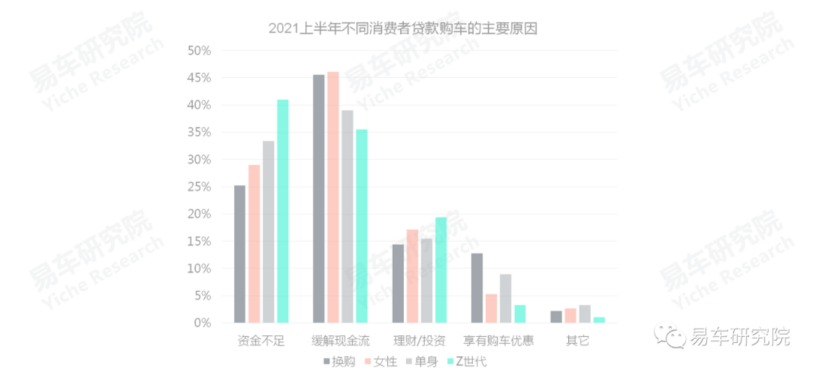 2021上半年,換購、女性、單身、Z世代等消費群體的貸款購車意愿,都比較強烈;