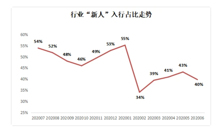 深圳市房地產(chǎn)中介協(xié)會認(rèn)為,2021年1-6月份以來,全市實名登記的星級從業(yè)人員雖然存在部分下滑現(xiàn)象,但總量仍處在平穩(wěn)的水平。不可否認(rèn)的是,由于市場持續(xù)低迷,房地產(chǎn)中介行業(yè)吸引力相比以往有所下降,特別是“新人”(指完全無行業(yè)從業(yè)經(jīng)驗者)在新進(jìn)從業(yè)人員隊伍中占比呈現(xiàn)波動式下滑態(tài)勢。