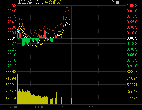截至午盤,滬指報(bào)2039.03點(diǎn),上漲8.53點(diǎn),漲幅0.42%,成交309.66億元;深成指報(bào)7289.03點(diǎn),上漲61.79點(diǎn),漲幅0.85%,成交467.69億元;創(chuàng)業(yè)板指報(bào)1339.83點(diǎn),上漲13.14點(diǎn),漲幅0.99%,成交141.35億元。