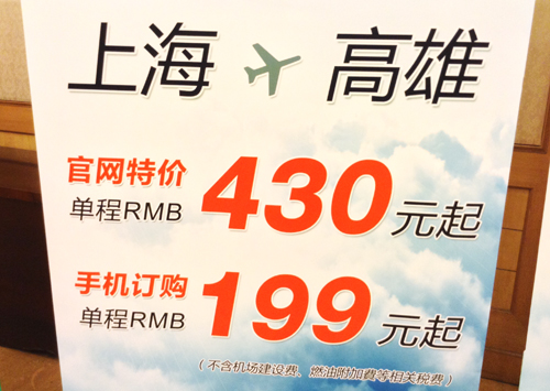 央廣網(wǎng)北京10月9日消息,據(jù)經(jīng)濟(jì)之聲《天下公司》報(bào)道,春秋航空正式對(duì)外宣布,將從10月27日開(kāi)通上海直飛高雄的航班,吉祥航空也透露,計(jì)劃今年10月至11月間開(kāi)通這個(gè)航線(xiàn)。自2009年海峽兩岸實(shí)現(xiàn)航班定期化以來(lái),這是大陸低成本民營(yíng)航空首次獲準(zhǔn)經(jīng)營(yíng)兩岸的航線(xiàn)。