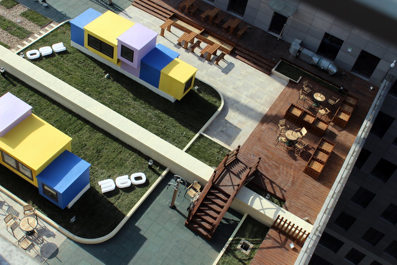 小艾:是這樣子的,因?yàn)榇蠹译m然可以去底下,但是樓上的一些員工可能坐電梯不是很方便,下樓梯也可能不是很方便,所以說公司在中央一層建了這么一個(gè)區(qū)域,然后大家可以呼吸呼吸新鮮空氣。