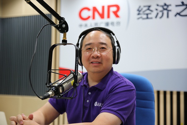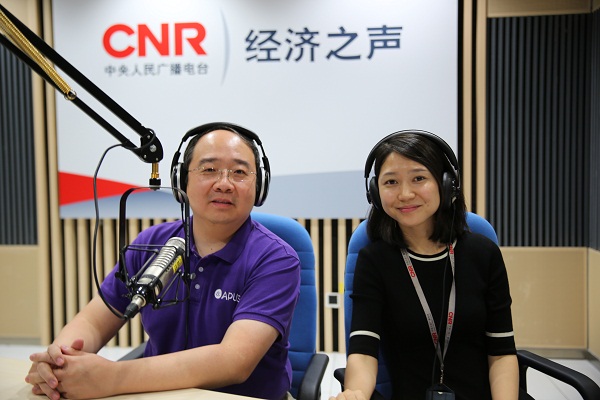APUS創(chuàng)始人、CEO李濤和經(jīng)濟之聲節(jié)目主持人梁婧